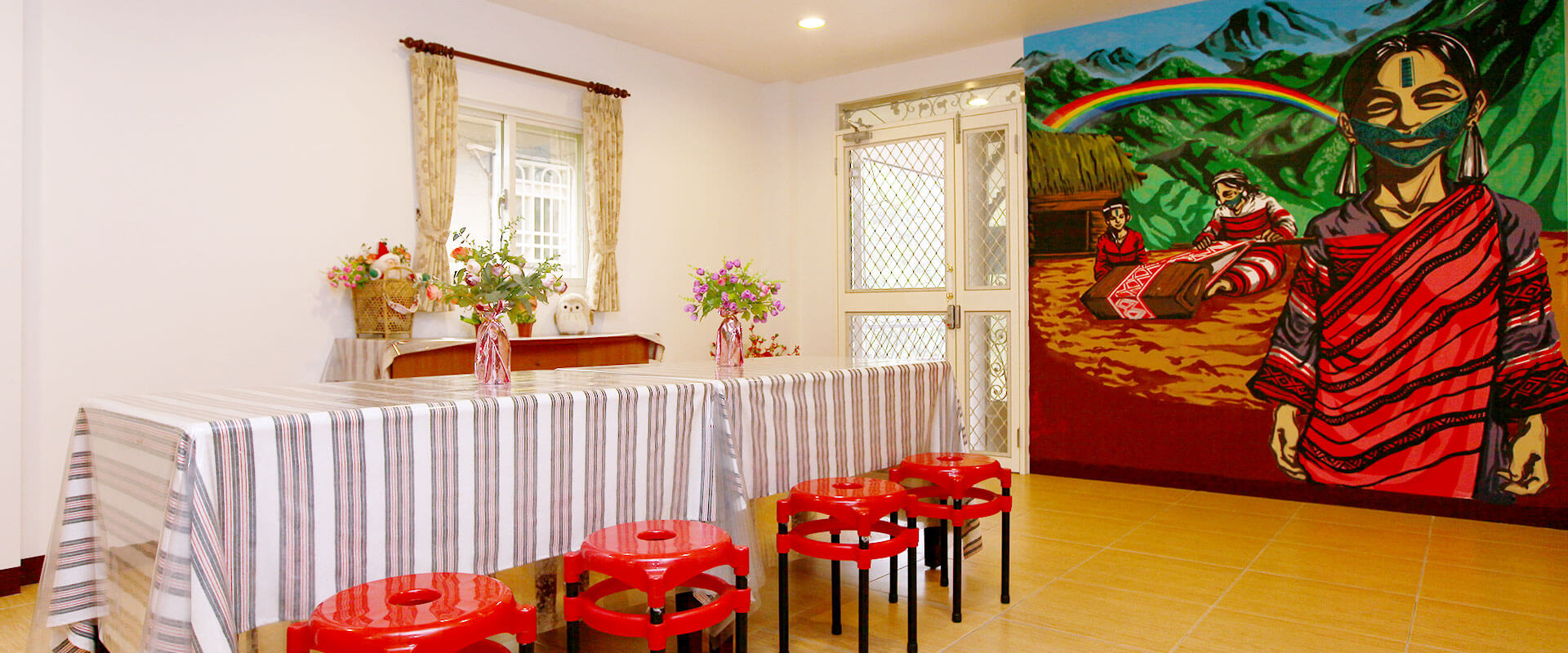 民宿內充滿了泰雅風情的佈置,一幅幅有特色的大面彩繪牆,還有熱情的民宿主人,乾淨又平價的客房、寬敞的公共空間、廚房、烤肉等設備一應俱全!